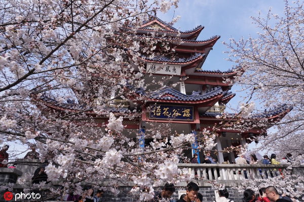 Cherry blossoms at Wuxi’s Turtle Head Isle scenic spot. [Photo/IC]