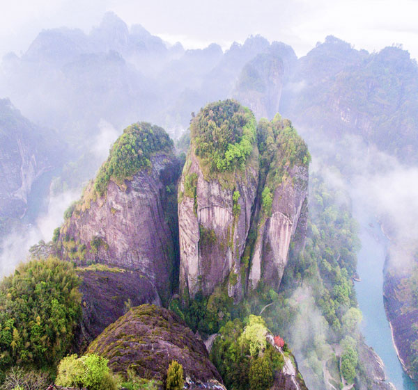 Route: Wuyi Square >> North Entrance of the Mount Wuyi Scenic Area >> Bamboo Grove >> Lianhua (Lotus) Peak >> Yulin Pavilion Kiln Site >> Xingcun Town Bamboo Raft Wharf >> Yixiantian >> Huxiao Rock >> Tianyou Peak >> Yunv Peak >> Wuyi Palace >> Lantang Bridge >> Sangu Resort