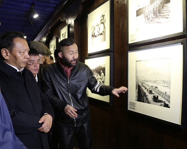 Government officials of the Tibet autonomous region attend the photo exhibition of the famous photographer Lan Zhigui in Potala Palace in Lhasa on Friday. [Photo by Palden Nyima/chinadaily.com.cn]