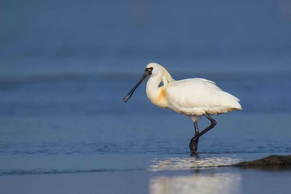 A black-faced spoonbill, a critically endangered bird species, is seen in a wetland in Fuqing, East China's Fujian province, during a bird-watching event held by the Fujian Bird Watching Society from March 25 to 31. [Photo by Xiao Bingxiang/provided to chinadaily.com.cn]