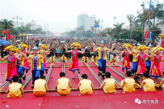 Visitors are treated to a traditional welcome ceremony. [Photo/Official WeChat account of Nanning Tourism]