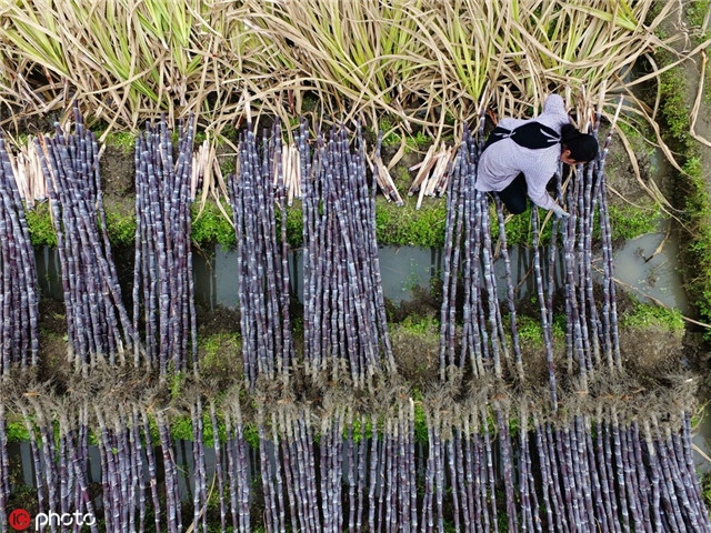 A farmer harvests sugar cane in Hezhou city, Guangxi. The region is China's biggest producer of sugar. [Photo/IC]