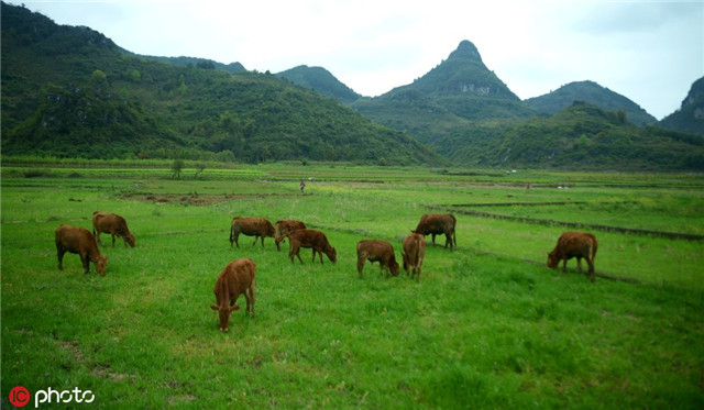 Cows graze on a green pasture. Guangxi is seeking to ensure that its development is environmentally sustainable. [Photo/IC]