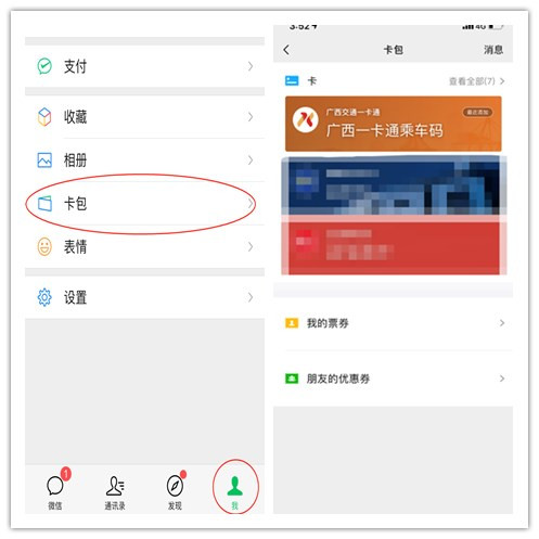 Locate your e-citizen card in the card section and click the Guangxi E-card Riding Code Payment. [Photo/www.chinaservicesinfo.com]