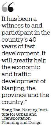 "It has been a witness to and participant in the country's 40 years of fast development. It will greatly help the economic and traffic development of Nanjing, the province and the country," Yang added.