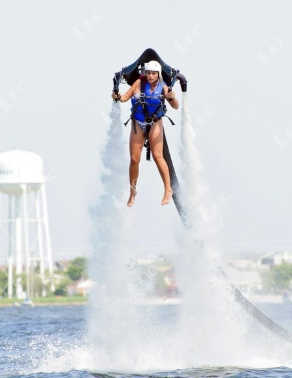 Powerful jet packs can shoot visitors high above the sea level. It is a great way to relieve the stress of city life while feeling like a superhero. [Photo/IC]