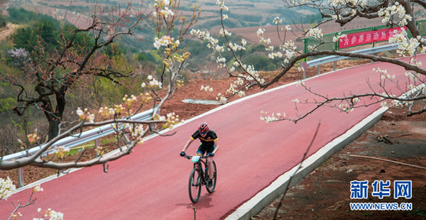 A competitor hits the mountain road in Gaoping, in Shanxi province. [Photo/Xinhua]