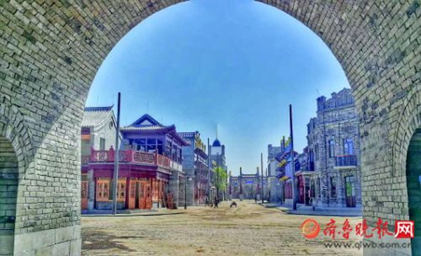 The construction of Jinan Old Street in movie city was completed on April 14, with a series of antique buildings being erected featuring blue bricks and gray tiles.