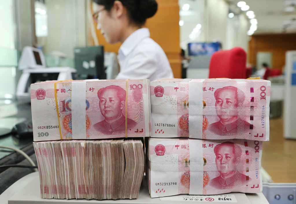 An employee counts bank notes at at a bank in Nantong city, East China's Jiangsu province, July 24, 2018. [Photo/IC]