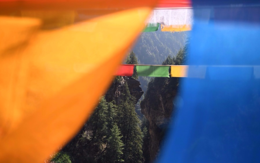 A view of the canyon scenery in Gyirong county of Xigaze city, southwest China's Tibet autonomous region on April 28, 2019. The vast drop in altitude in Gyirong county, known as the "backyard garden of Mount Qomolangma", makes the ecological environment unique, with crystal-clear lakes and towering mountain peaks creating a mesmerizing scene. Mount Qomolangma is known as Mouth Everest in the West. [Photo/Xinhua]