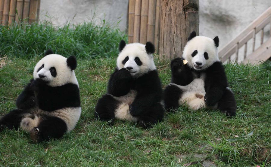 Pandas at the Research Base of Giant Panda Breeding in Chengdu city, Southwest China's Sichuan province. [Photo by Chi Ajuan/provided to chinadaily.com.cn]