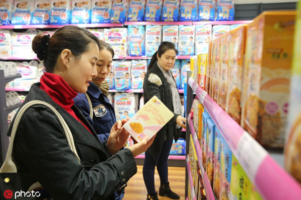 Customers are busy with shopping at the import goods purchasing center at Qingdao Free Trade Port Area in Shandong province Nov 25, 2016. The center, covering 2,000 square meters, mainly sells wine, baby and maternal products, snack food, fresh food, and cosmetics, which are directly purchased from Qingdao Free Trade Port Area at a price about 10 to 40 percent lower than the market price. Customers can also download the center's app to shop online. [Photo/IC]