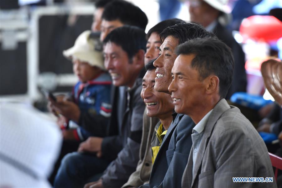 Villagers enjoy performance by the song and dance ensemble of Lhasa at Jiaru village in Lhasa, capital of Southwest China's Tibet autonomous region, May 9, 2019. [Photo/Xinhua]