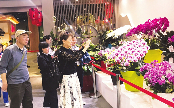 Visitors take photos in the interior exhibition area for Shanxi province at the 2019 Beijing International Horticultural Exhibition, on May 7. [Photo/Shanxi Daily]