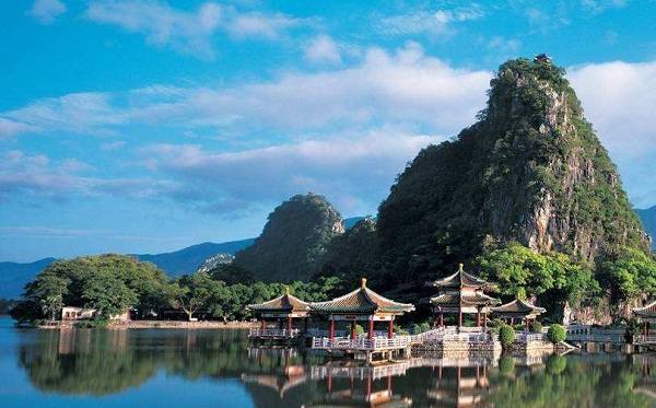 Known as the first wonder of Lingnan, the Seven Star Cave Scenic Spot covers 8.23 square kilometers. It is named after the seven limestone peaks arranged in the shape of the Big Dipper. The peak landscape, the cave, the lake, the inscription and the temple are the main landmarks.