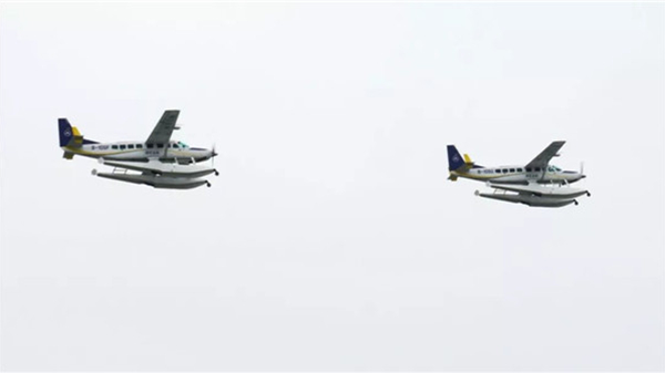 The 15-minute journey uses the amphibious aircraft Cessna 208 Caravan, which features eight leather passenger seats and large sightseeing windows. It boasts a maximum speed of 324 kilometer per hour, and can fly at an altitude of six kilometers. The ticket prices are below 1,000 yuan ($146.6).