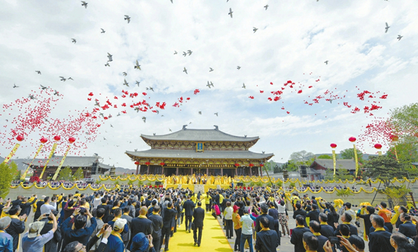 An ancestor worship ceremony held at the Yan Emperor Mausoleum in Gaoping county, Shanxi province, on May 12 brought together thousands of cross-Straits residents.