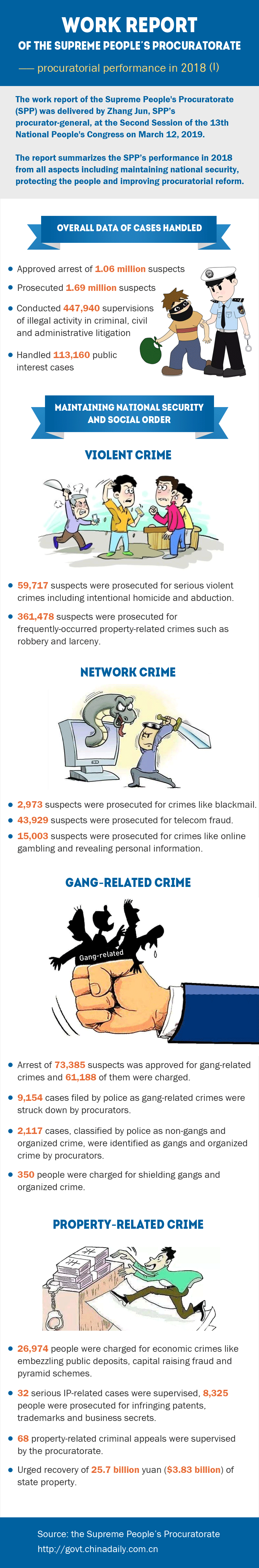 Work report of the Supreme People’s Procuratorate -- procuratorial performance in 2018