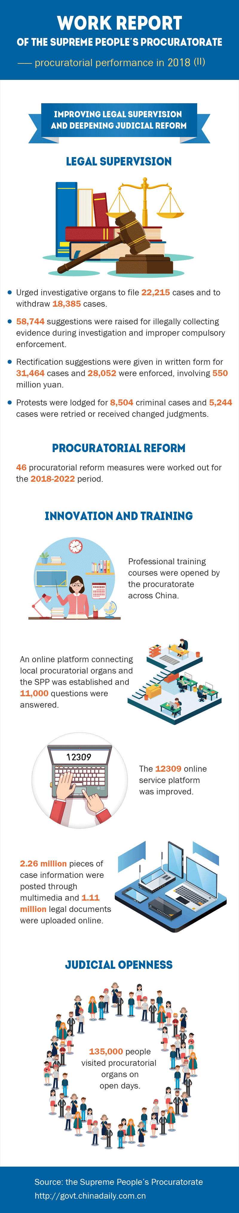 Work report of the Supreme People’s Procuratorate -- procuratorial performance in 2018