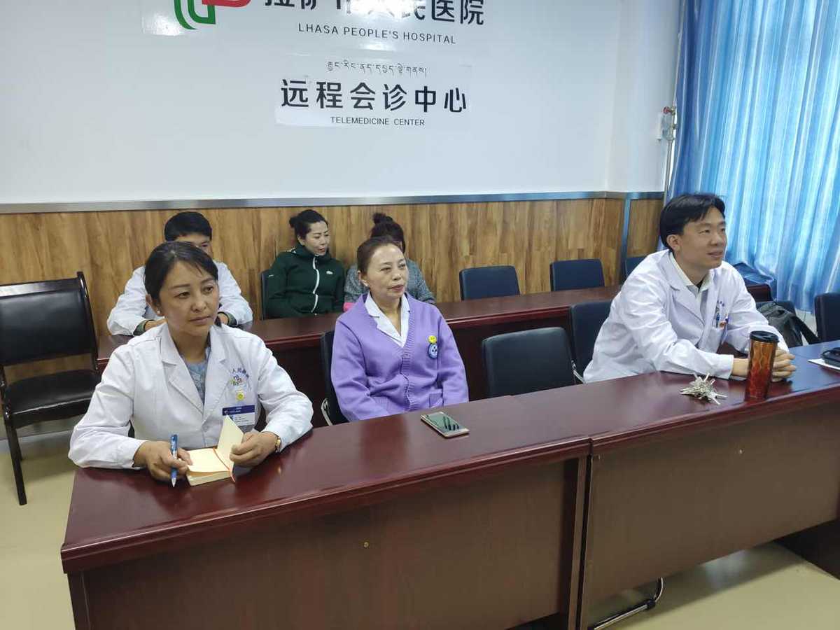 Doctors receive training in the teleconference center of the Lhasa People's Hospital. [Photo provided to chinadaily.com.cn]