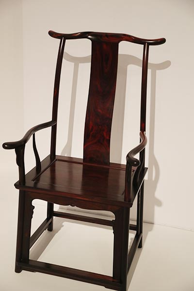 More than 20 redwood pieces of furniture made by Han are now on show at the National Art Museum of China in Beijing, through May 19. [Photo by Jiang Dong/China Daily]