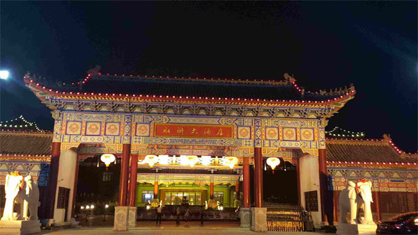 Shuihu Hotel in Liangshan county in Jining is a 4A-level hotel themed on the culture of Water Margin (also known as Outlaws of the Marsh), one of the China's "Four Great Classical Novels". It is decorated in an antique flavor with carved beams and painted rafters.