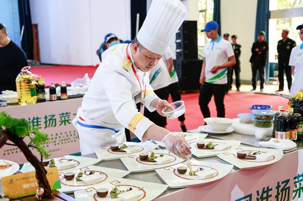 A chef prepares a traditional Huaiyang dish at the event on May 8. [Photo provided by Jiangsu Food and Pharmaceutical Science College]