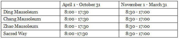 Currently, four spots are officially opened to the public, namely the Ding Mausoleum, the Chang Mausoleum, the Zhao Mausoleum and the General Sacred Way of the Ming Tombs.