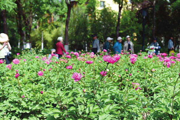 Visitors appreciate Chinese herbaceous peonies in Yifen Park, Taiyuan, in Shanxi province, on May 15. The park hosted a peony themed event on the day with over 2,000 Chinese herbaceous peonies in blossom. [Photo/Shanxi Daily]