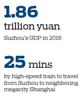 According to official statistics, the city's GDP hit 1.86 trillion yuan ($270.68 billion) last year, a year-on-year increase of 6.8 percent, ranking first among the cities in Jiangsu province and seventh in China.