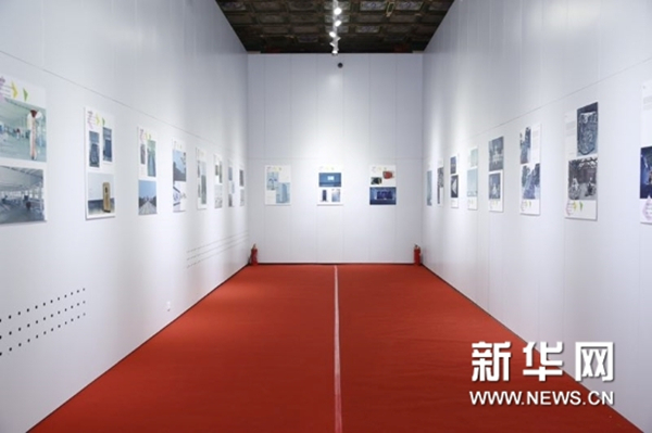 A gallery at the press conference with photos reviewing the first Sculpture Projects Ping Yao, held in Pingyao county in Shanxi province in 2018. [Photo/Xinhua]