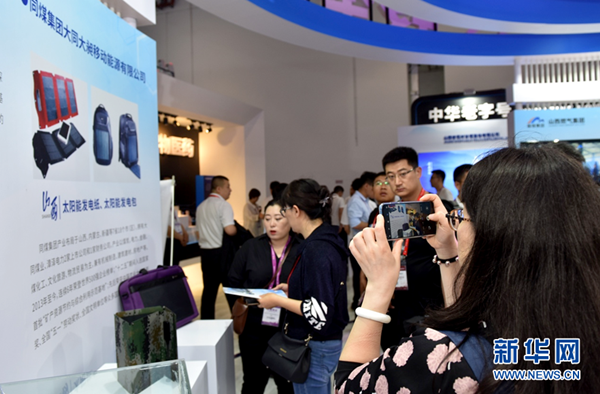 A visitor takes a photo at the comprehensive exhibition area on May 18. The expo is the largest investment and trade fair in central China. [Photo/Xinhua]