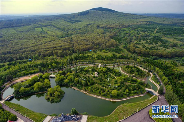 An aerial view of Xiaonanshan Forest Park in Youyu county, in Shanxi province, on Aug 7, 2018. Sitting on the edge of the Ordos Desert, in Shanxi province, Youyu county was for centuries a barren land suffering from sandstorms and soil erosion. When the People's Republic of China was founded in 1949, the county's green coverage rate was less than 0.3 percent. After years of trial and error in planting trees, the local woodland area has increased to about 2,000 sq km -- more than half of the county's area. [Photo/Xinhua]