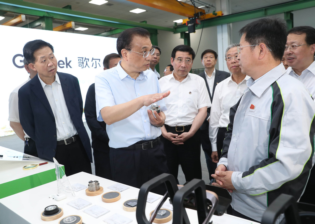 The premier voiced appreciation for Goertek's efforts to prioritize research and innovation and to explore the domestic and international markets.