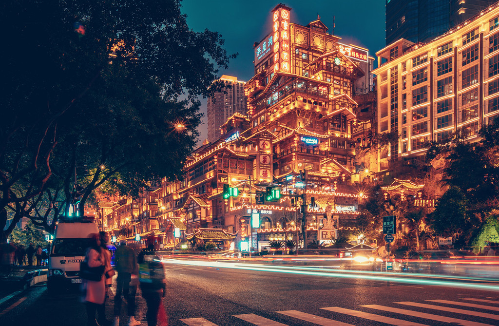 A view of the illuminated Hongyadong housing complex in Jiangbei district, Chongqing on June 8, 2018. [Photo/IC]