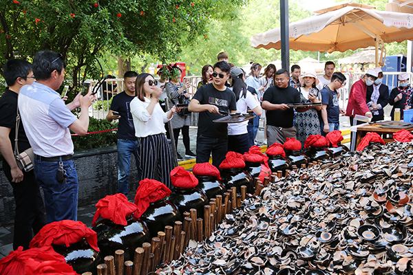 People smash their bowls after drinking wine from them in Xi'an, Shaanxi province.[Photo/Xinhua]
