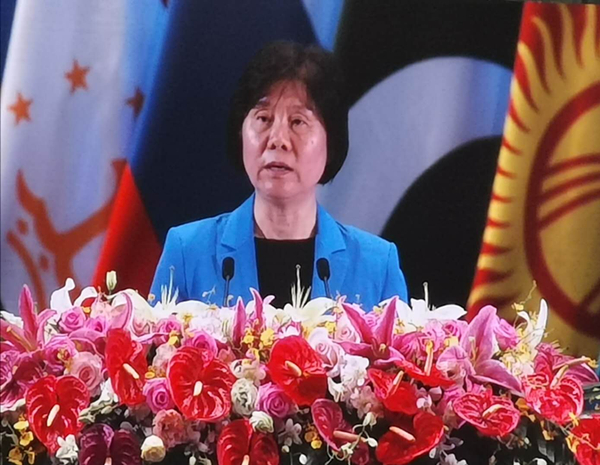 Shen Yueyue, vice chairwoman of the Standing Committee of the National People's Congress and president of the Committee on Good-neighborliness, Friendship, and Cooperation of the Shanghai Cooperation Organization, met with international representatives at the forum. They exchanged opinions on promoting the spirit of Shanghai and on strengthening communication and cooperation in the medical and health sectors.