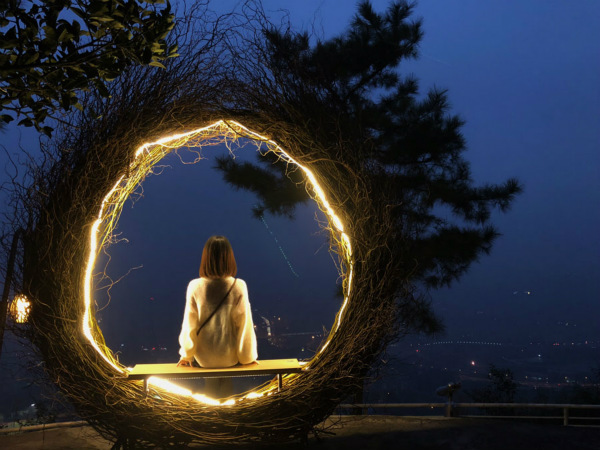 Yihuali Night View Park is located on Nanshan Mountain in Chongqing, a city in southwest China that is also surrounded by the Yangtze and Jialing rivers.