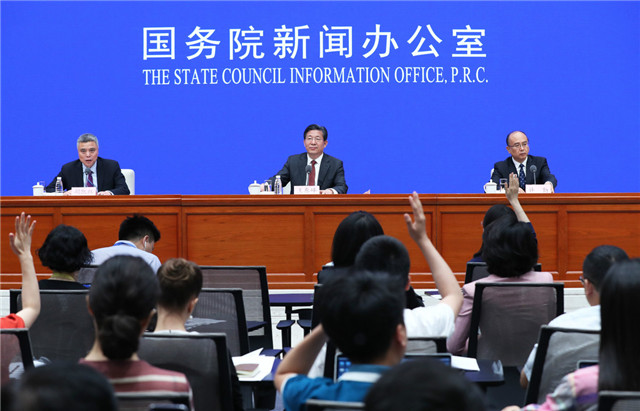 A press conference on development in North China's Hebei province is held at the State Council Information Office on May 28, 2019. [Photo by Zhu Xingxin/chinadaily.com.cn]