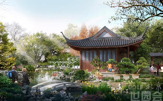 The Jiangsu Garden, covering an area of 2,800 square meters, is designed using elements of classical Chinese gardens in the city of Suzhou, which were added to the UNESCO World Heritage List.