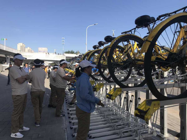 Bike parking equipment is seen nearby Longze subway station in Beijing, May 31, 2019. [Provided to chinadaily.com.cn]