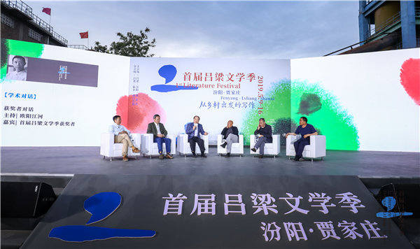 Winners of Ma Feng Literature Prize and Lyuliang Literature Prize hold an academic dialogue during the first Lyuliang Literature Festival. [Photo provided to China Daily]