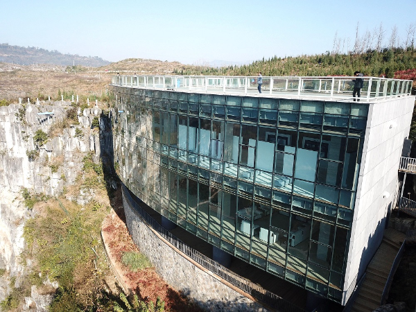 An art museum has been built at the edge of a 165-meter-high cliff in Anlong county, Southwest China's Guizhou province. It is the first art museum, named Limestone Galleay, built at the top of a cliff in China.