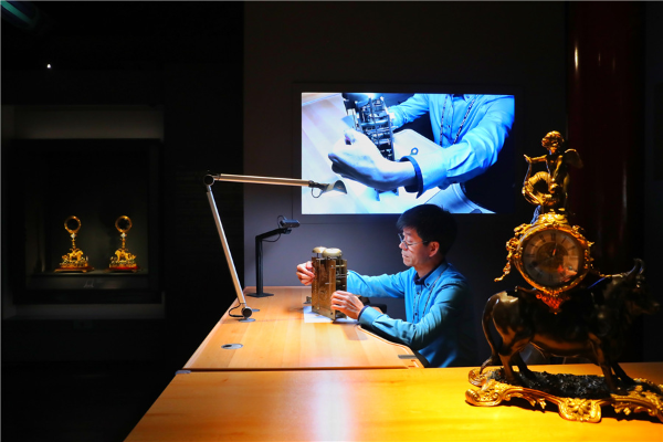 Other precious timekeeping instruments from both institutions help to form a cultural dialogue. For example, a similar pair of gravity clocks from the collections of the Palace Museum and Cartier are presented together for juxtaposition. The clocks, whose movements are driven by gravity that makes them roll down slowly on an inclined base, both have to be reset by hand.