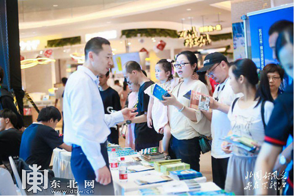 Staff members of the Heilongjiang Provincial Culture and Tourism Department distribute tourism publicity materials at a promotion meeting held in Wuhan, in Central China’s Hubei province, on May 26. [Photo/dbw.cn]