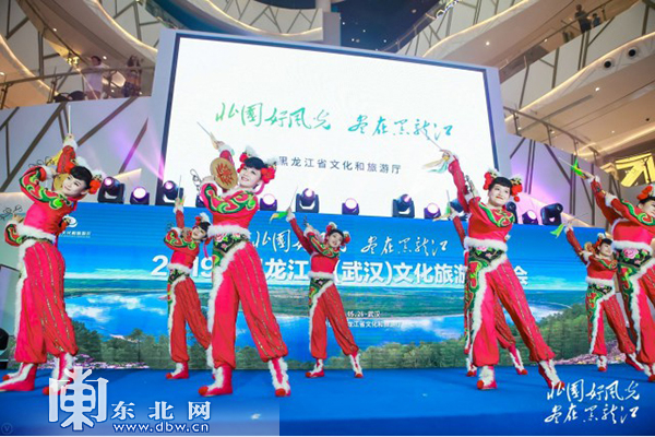 An exciting dance performance featuring cultural elements from northeastern China is staged at a tourism promotion meeting sponsored by the Heilongjiang Provincial Culture and Tourism Department in Wuhan. [Photo/dbw.cn]