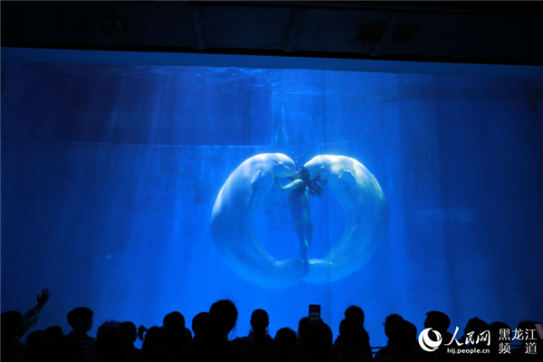 White whales form a heart shape under the guidance of an animal trainer at Harbin Polarland in Harbin, Northeast China’s Heilongjiang province, on May 28. The performance was put on in celebration of International Children’s Day for around 500 Harbin primary school students. [Photo/people.cn]