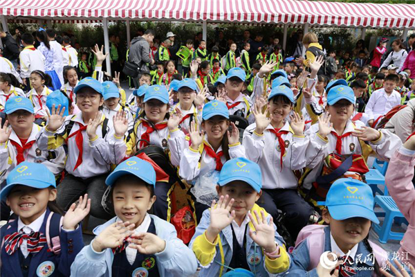Students wave at the camera at Harbin Polarland in Harbin, Northeast China’s Heilongjiang province, on May 28. [Photo/people.cn]