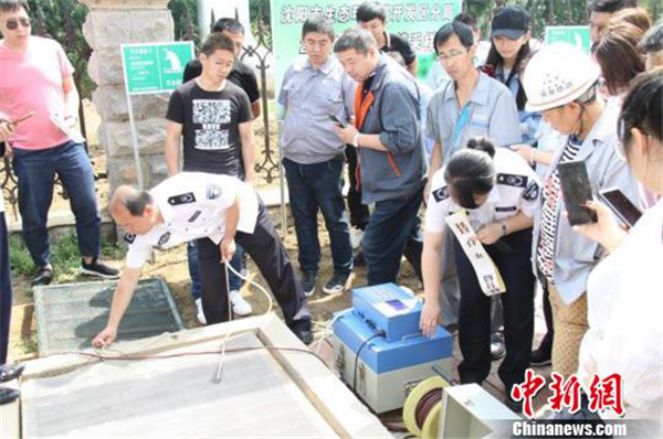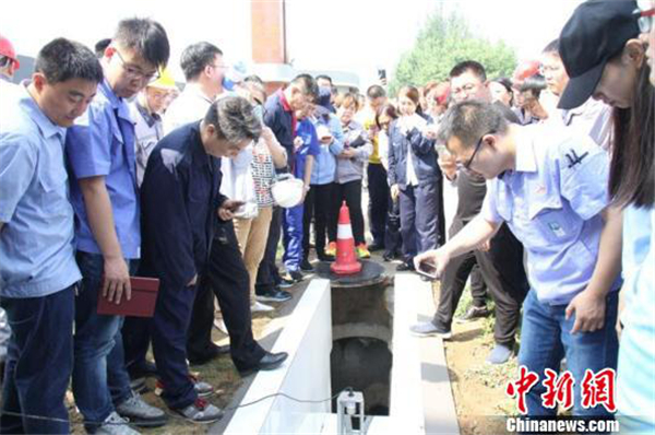 A 24-hour water automatic detection sampling system is installed at a waste water discharge outlet of an enterprise in the Shenyang Economic and Technological Development Zone on June 5. [Photo/chinanews.com]