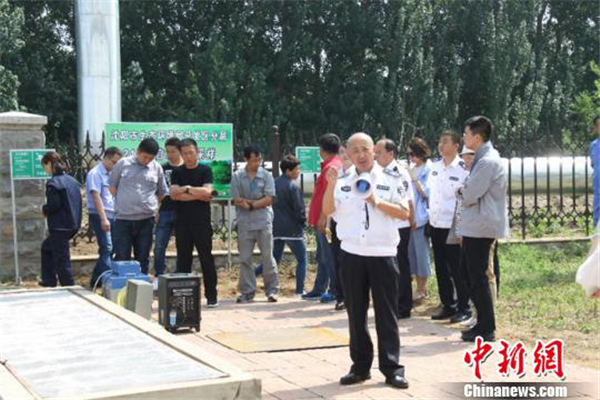 An official of the Shenyang Ecological Environment Bureau introduces a 24-hour water automatic detection sampling system to enterprise representatives in the Shenyang Economic and Technological Development Zone on June 5. [Photo/chinanews.com]